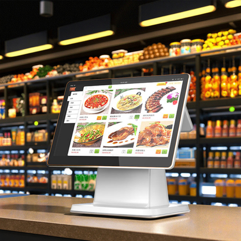 หน้าจอคู่ระบบแอนดรอยด์ POS แบบ all-in-one ระบบทัชสกรีน15นิ้วสำหรับใช้ในร้านอาหาร